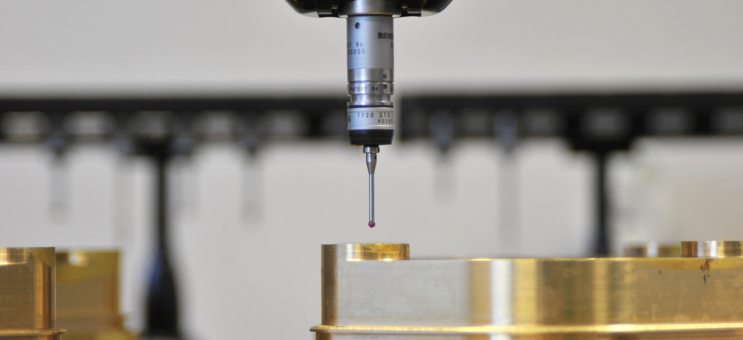 Our advanced Coordinate Measuring Machine is then ready to measure a brass component. A series of probes are automated to gently press down onto the brass surface, switching between different-sized wands to gather diverse information. From the inner and outer diameter, down to the individual threads and their positions, our Metrologist takes as many measurements as possible so that the CNC mill can complete the milling works to perfection.