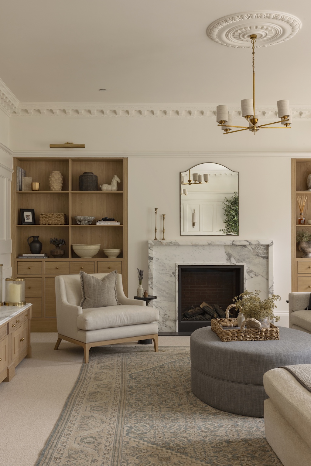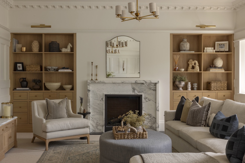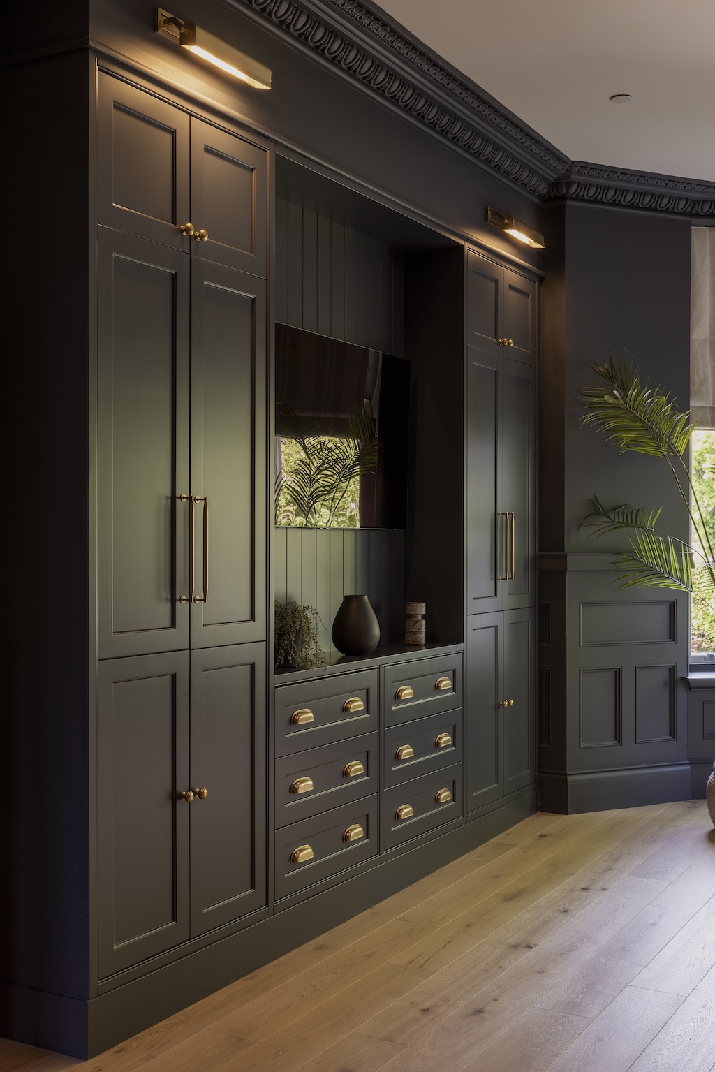 Bespoke joinery became a defining feature of the home, shaping its character that honours its Victorian heritage and the elegance of handcraft. From the oak staircase to wall panelling, bookcases and cabinetry, every element was designed to feel seamlessly integrated rather than an addition. “The idea was to create pieces that not only serve a practical purpose but also elevate the architectural detail of the room, such as taking cabinetry up to the ceiling line,” says Louise Bramhill, Director and Founder of Studio LBI.