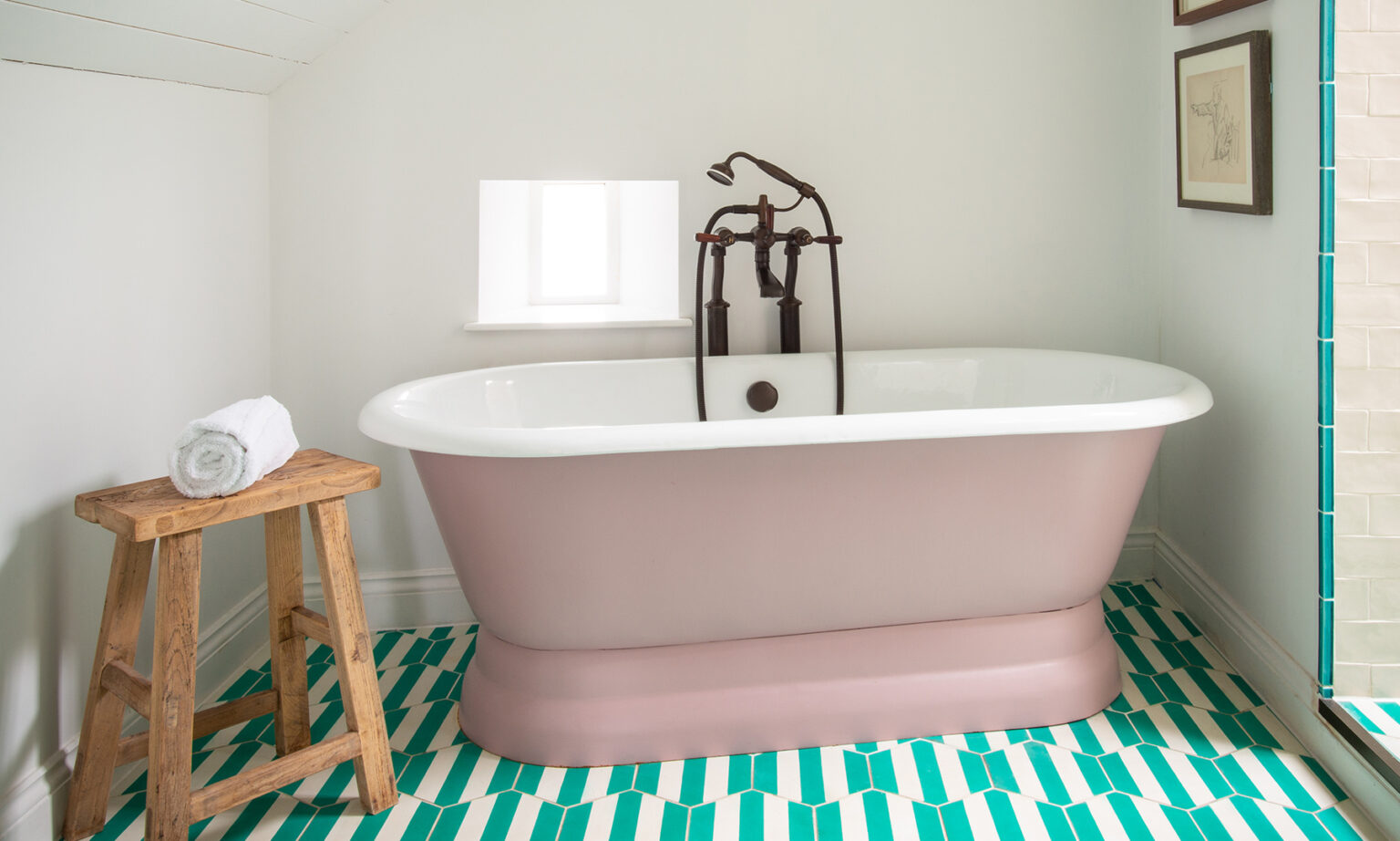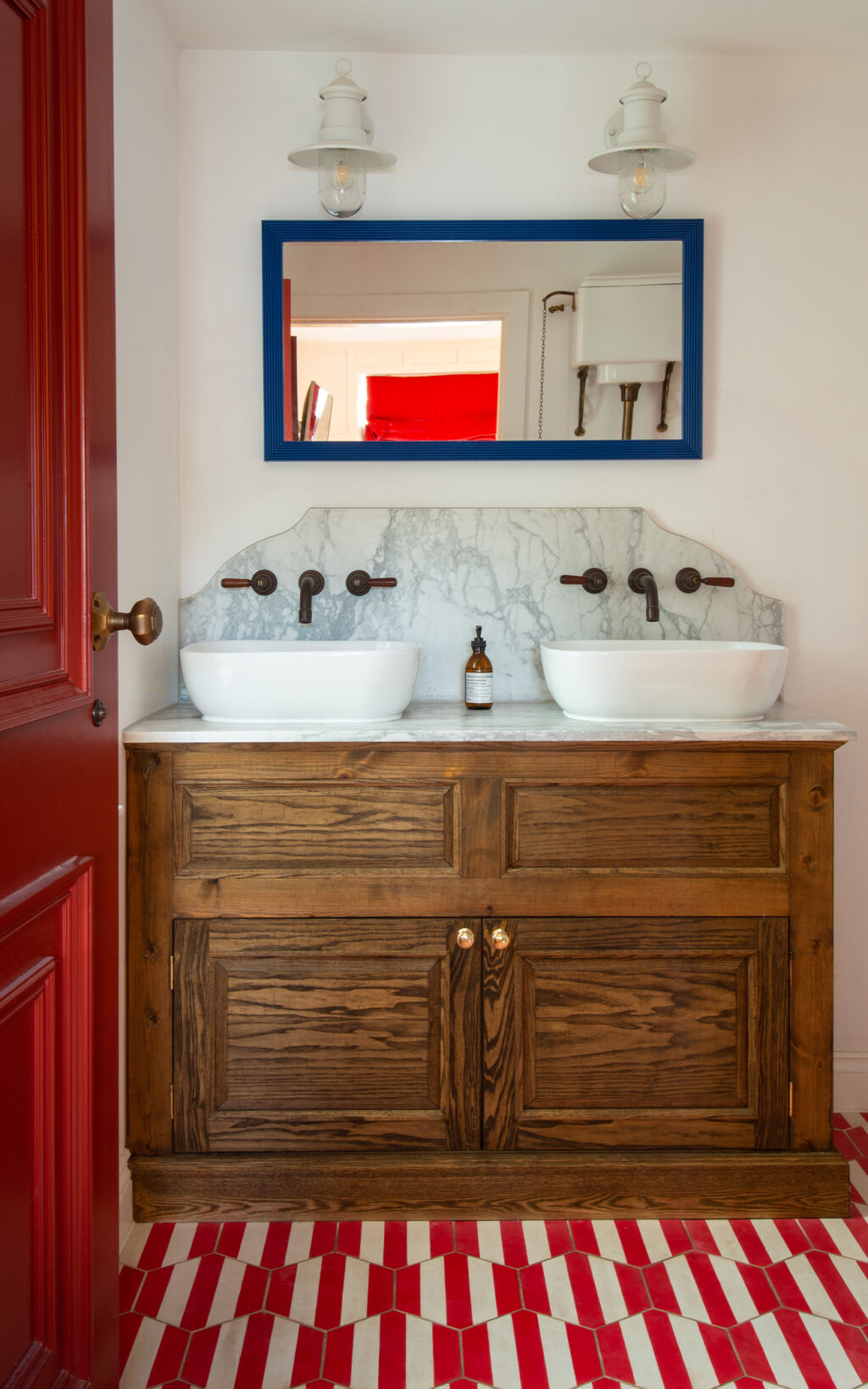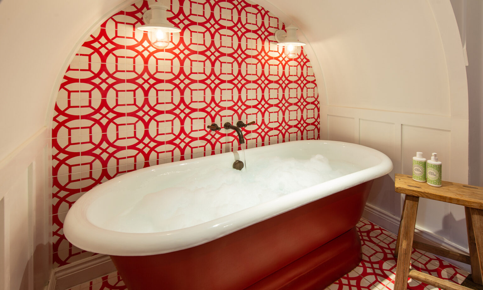 Each of the bedrooms are also designed with different themes to provide a fun experience for both new and returning guests. One ‘Pink & Green’ family room reveals a cubby-hole of bunkbeds concealed behind a curtain, while the other ‘red’ room features an alcove with a patterned tile mosaic. With each jazzy design feature comes a heavy dose of home comfort for that perfect feel of ‘home away from home’, including plush bedding and roll-top bathtubs paired with luxury brass shower mixers by Samuel Heath.